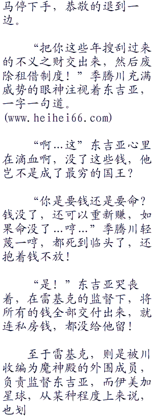 “我说过的,不要命令我!你难道忘了吗?”雷基克神色一厉,对于川四人,因为对方是魔神殿的,他可以放下身段,但是东吉亚除了几个臭钱之外,还有其他东西吗?
