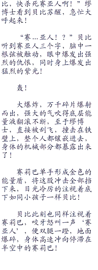 “可恶…赛亚人”缪博士看到赛莉巴的模样,眼中爆发出深深的仇恨,咬牙切齿怒视着半空中的赛莉巴还有周围的女赛亚人。