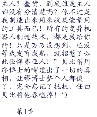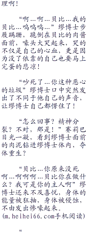 “不过没关系,只要等到贝比成熟,银河系就是属于我的了!哈哈哈~!”缪博士看到生命维系容器中的杰作,又充满了信心,他了解贝比的强大,只要发育完全,可以掠夺别人的力量,然后成为宇宙最强的存在!