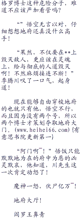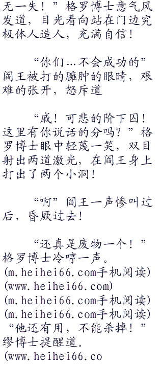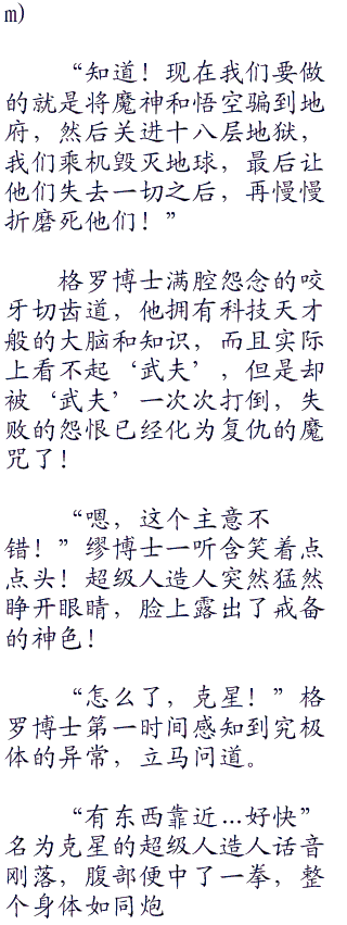 “是格罗博士还有一个叫做缪博士!这些都是北界王告诉我的,他说,他们联手在地狱制造了一个超级人造人,打败了所有地狱守卫,抢夺了地狱的所有权!”悟空一脸凝重道,他很清楚,一旦地狱之门开启,后果凶灵为祸人间,后果不堪设想!