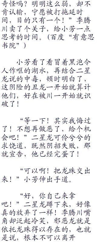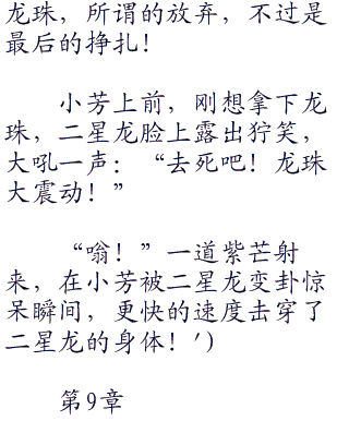 “小芳,不要手软,只有彻底打爆他,才可以重新获得无污染的龙珠!”季腾川可不会被二星龙的虚张声势骗过,大声给小芳打气。有意.思书院首发