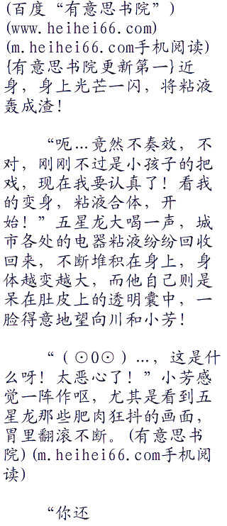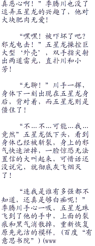 “呀…好恶心啊!”小芳惊恐的叫起来,一下子打消了和五星龙PK的念头!