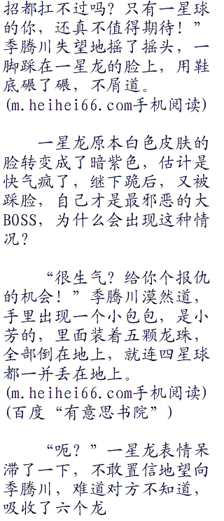 “你真的表情还真可怕呢!不就是下个跪吗?犯得着摆出一脸吃屎的模样吗?”季腾川恶毒的调侃道,只有这样彻底激怒一星龙,才更有乐趣!