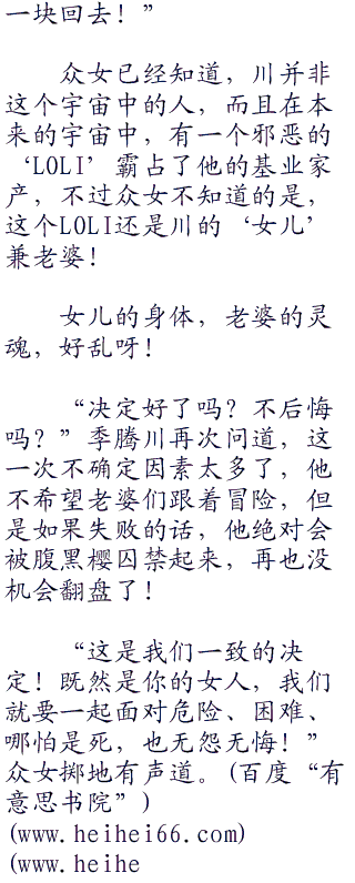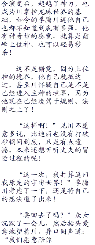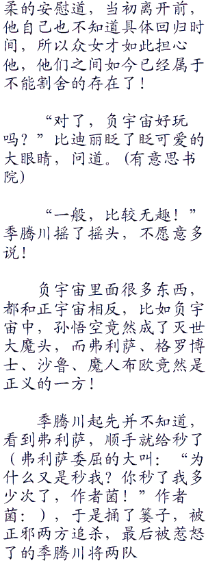 小芳等众女不知道川去哪里了,只说是到负宇宙去取力量!