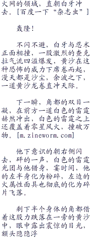 封印术浮现的瞬间,傀儡被困,白牙的身影刹那朝角都冲去,简单、直接,没有任何变化。