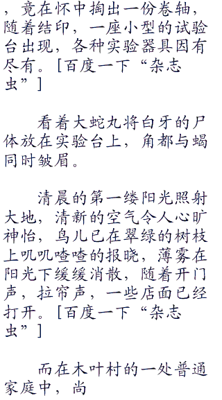 角都走到倒下的白牙身旁,看着大蛇丸一边翻着对方的尸体,一边发出啧啧称奇的声音,不由背后涌起一层冷汗。