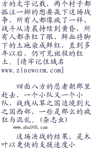 胶着的战火在整个忍者世界燃起,除了那个隔着重重海洋的神秘水国,四个超级陆地大国已打成一团。