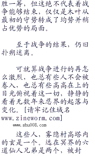 相比于上次大战,这次的木叶实力更弱了些,虽说与上次大战的间隔时间不长,可其中发生的事并不算少。