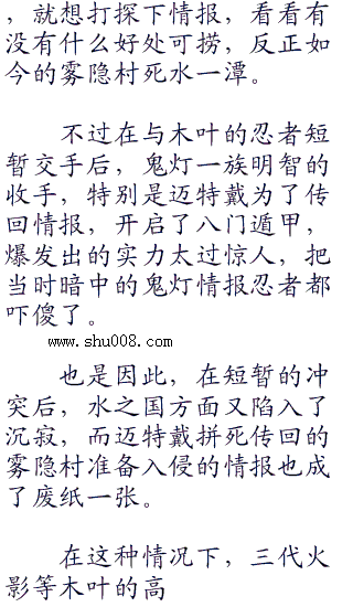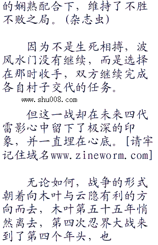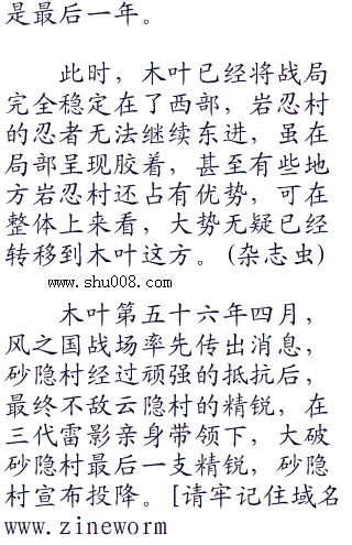 而无论这些事,第四次忍界大战仍在激烈的进行,在木叶第五十五年这一年,发生了许许多多的大事。