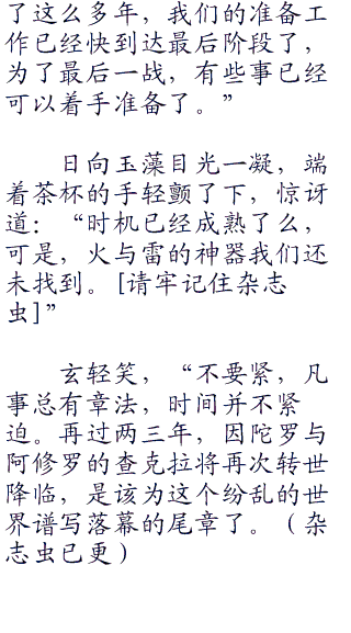 玄收回目光看了她一眼,微笑道:“大事倒算不上,不过这次忍界大战该结束了。”