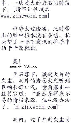 三人快速逃跑,四面尽是落下的岩石发出的巨响,烟尘弥漫,混乱的山洞中根本看不清局势。