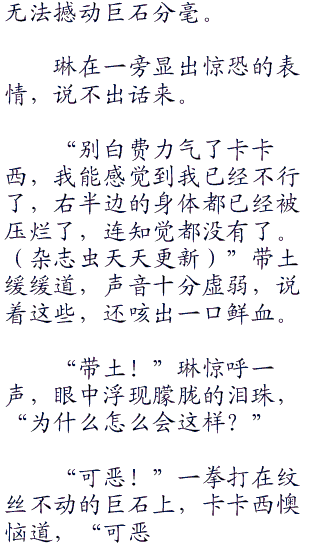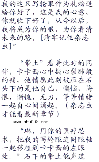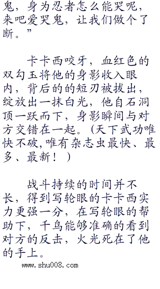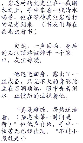 就在此时,上空突然一块数人多高的岩石落下,正落在卡卡西身旁,虽未砸中他,强大的冲击力却将他震倒在地,再加上他的左眼刚刚被刺伤,一时间竟无法爬起。