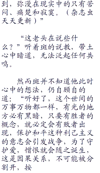 斑看着他,低声道:“看清现实吧,这个世界上不尽人意的事到处都是,我活的越久越感觉