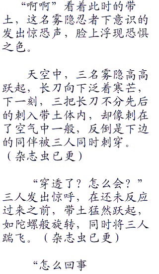 “什么人?”一位带着面具的雾隐村忍者转身,刚刚因为卡卡西的突然动作,让他们没有注意到带土。