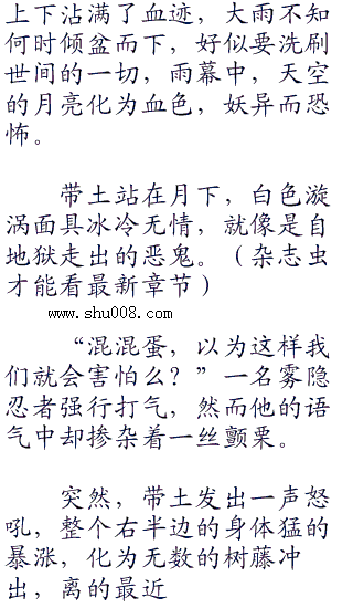 右半边身体,也在嘶吼声中狂暴,木遁刺破他的身体出现许多倒刺,就如树木的树干,千手柱间的细胞开始暴走。