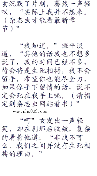 “为你送终这种事我怎么会错过,虽然你可能不喜欢自己死亡时有人在旁边。”玄平静道,语气中有一丝感慨,却没有悲伤。