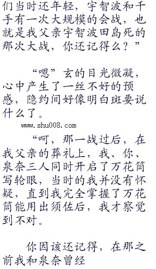 回忆在接踵而至,他体内的查克拉却在缓缓的调动,他还记得,在生命走到尽头之前,他还有一场必须要完成的战斗。