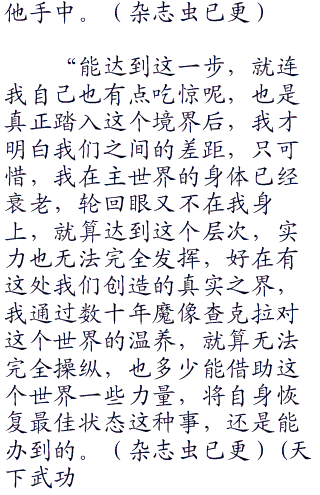 “我们辛苦了几十年,将这处世界从最初的荒芜变成如今的模样,也正好来当做战场,如果是在主世界,我们两人的战斗想要不被察觉就太难了。”