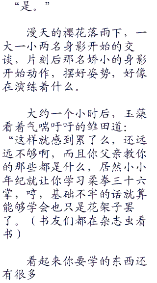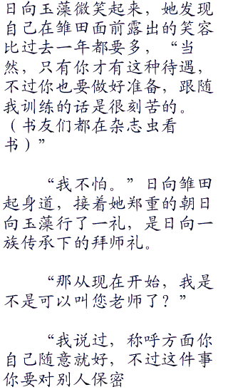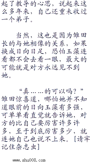 但她发现自己对雏田竟有一种格外的好感,哪怕这个小女孩性格和自己大相径庭,可看到她也会不由自主的想起小时候的自己。