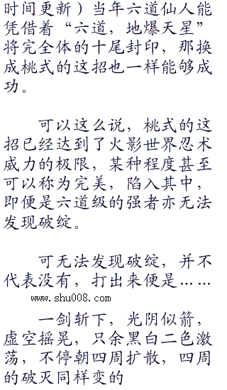 “如果是这样,我也无能为力了,我来这里的只有本源查克拉,虽然死亡后会对我造成近乎无法痊愈的伤势,可我本人仍活着,不过桃式的这招的消耗巨大,等我们两个‘死’后,我大哥就会降下同样的查克拉分身收拾残局,甚至他会让主世界的因陀罗和阿修罗提前觉醒,至于你死后爆发的月球,我也只能选择相信主世界的忍者了。”