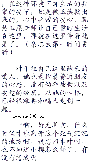 反正在这里也没危险,又有好吃好喝的,那就住在这里好了,虽然有些担忧木叶的情况,这里也不限制自由,可以他幼