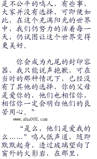 三代火影扭头,看了远处的火影岩一眼,似是陷入回忆,片刻后他幽幽的道,“鸣人,关于你的身世,我本不想现在就告诉你的,不过你身上好像有许多我不知道的秘密,比如说螺旋丸,比如说当初你是怎么和雏田一起逃回来的。”