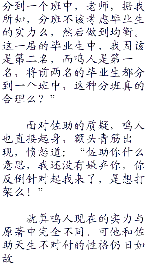 讲台之上,伊鲁卡念着这届毕业生的分班情况,在不久之后,就会有相应的上忍来带他们离开,从今天起,他们就会成为新的忍者小队。