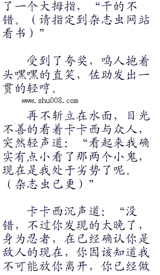 “闭嘴!”此时的再不斩已有些气急败坏,“忍者的实力可不是光看掌握了什么忍术,以他们这些菜鸟的水平,就算掌握了s级忍术我也能把他们轻松干掉。”