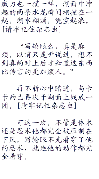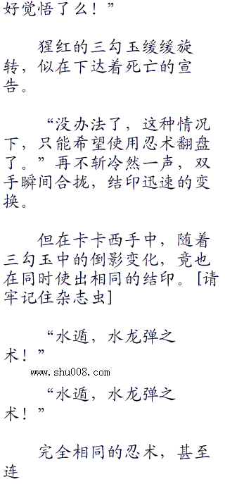 “那个小鬼,那个忍术!”仍在压制卡卡西的再不斩目光微变,语气中出现惊讶。