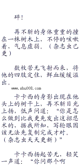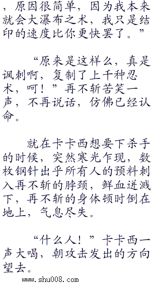 这一句,并非是出自卡卡西之口,再不斩瞬间扭头,只见一脸冷漠的宇智波佐助不知何时接近了他的身旁,手中的苦无刹那挥下。