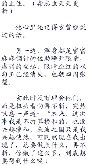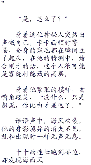 “你在问我么?”玄淡淡的瞥了他一眼,嘴角勾起了一丝笑意道,“我只是一个来波之国游玩的游客罢了,名字什么的,不用在意。”