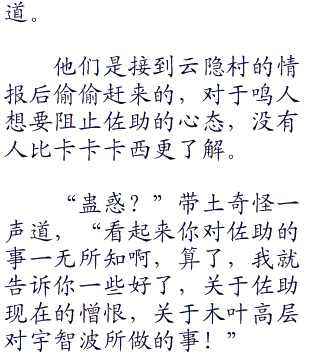 “蛊惑?”带土奇怪一声道,“看起来你对佐助的事一无所知啊,算了,我就告诉你一些好了,关于佐助现在的憎恨,关于木叶高层对宇智波所做的事!”