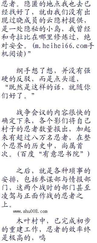 先是各大忍村自己商议的决断,忍者部队全面进入备战状态,除此之外,还有后勤,侦察,支援,预备役等一系列的部队,都要准备妥当。