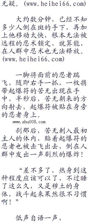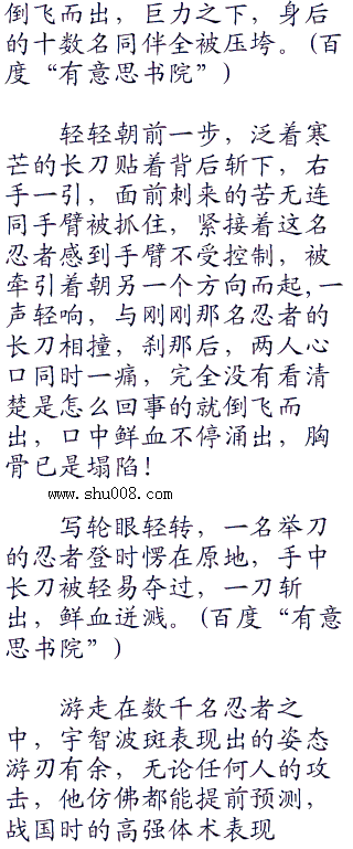 宇智波斑在人群中,如同一只翩翩起舞的红色蝴蝶,手上的动作举重若轻,凡是与他稍有接触的忍者,无不倒飞而出,在他的手下,战斗仿佛一种艺术,每一个动作都无比的简洁与自然。