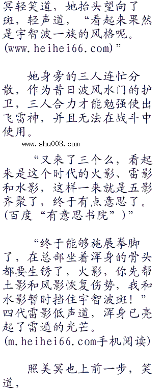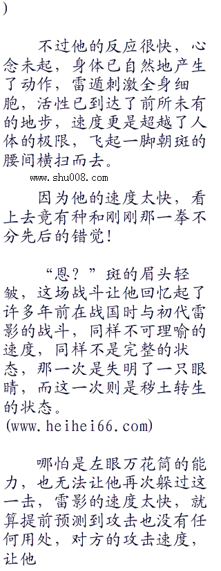 然而就在此时,炫目的光芒突然亮起,两道身影毫无预兆的出现在他们面前,一拳、一脚、刹那将斑与无击飞。