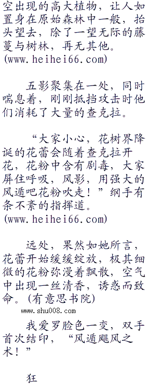 “快躲开!”她大喝一声,率先朝后跃去,另外的四位影脸色微变,同样不停的闪避,同时各自使出忍术攻击朝自己袭来的藤蔓!