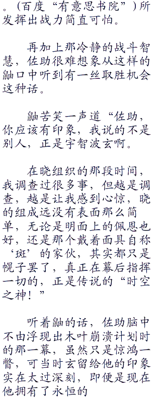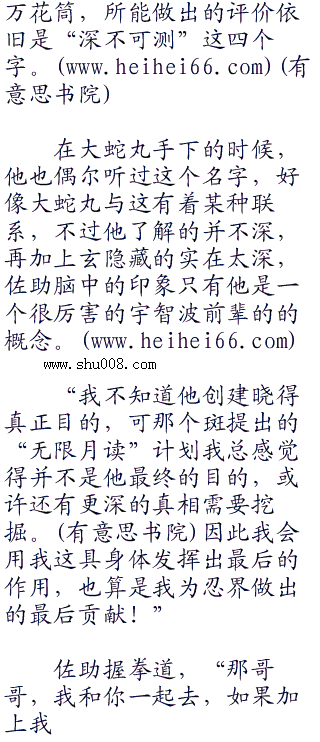 “呵!”鼬的嘴角勾起一丝笑意,低声道。“我早已是一个死人了,在这世间,我唯一放不下的只有你,可看到你的成长,我知道你能面对接下来的一切。