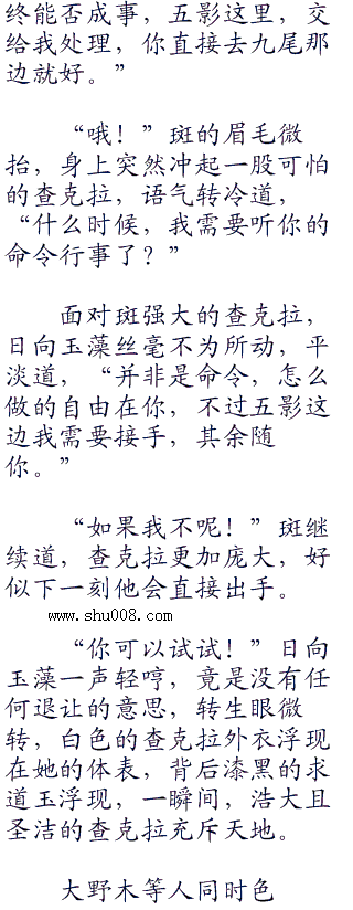 大野木的脸上同样无比难看,悬浮在半空沉声道,“竟会是这种发展,真是出乎老夫的预料,不过就算如此,我们五影也要在此阻止你,虽然目睹过你刚刚的实力,我们的胜率渺茫,可有些事不得不做,这是我们身为五影的责任!”