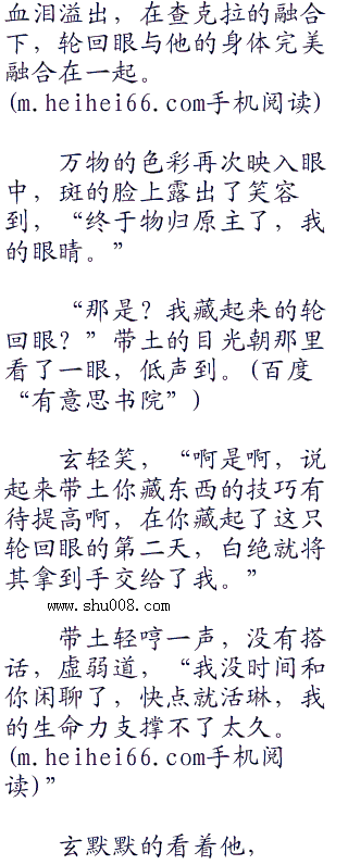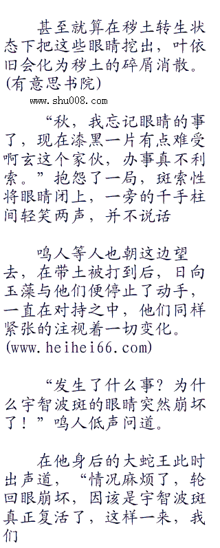 斑露出了笑容,正想说话,双瞳的轮回眼却猛地变的暗淡,随既化为秽土的碎屑落下,双眼渐渐化为空洞。
