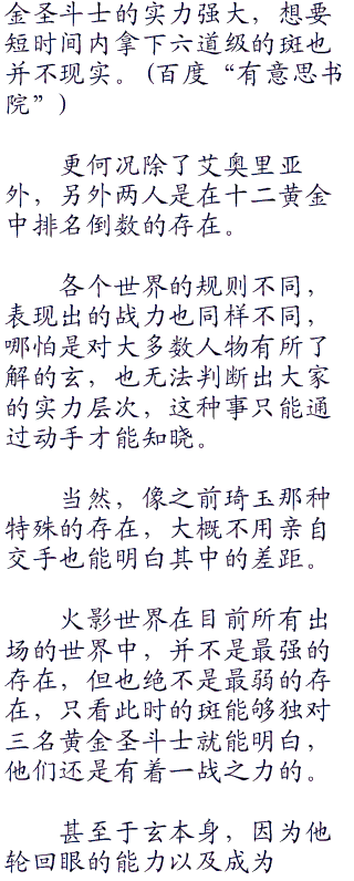 “准备拦下那些穿着黄金铠甲的家伙,小心他们的能力,与我们的查克拉不同,他们是使用一种名为小宇宙的力量。”玄沉声道,简单而迅速的介绍了下对方的力量特性。