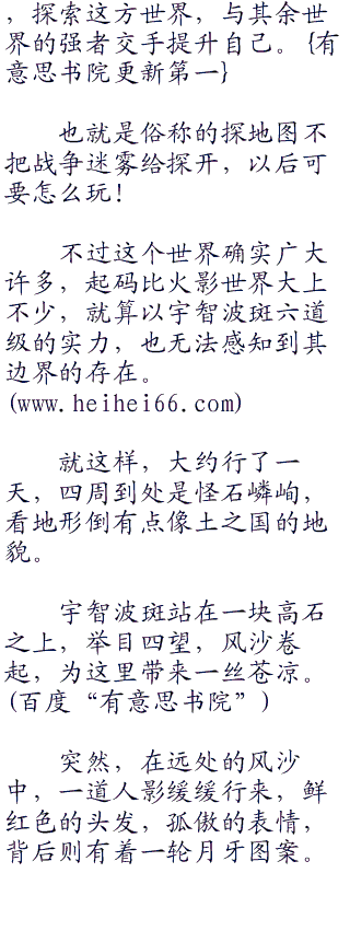另一边,宇智波斑离开新建立的木叶村之后,漫无目的的行在异世界的大地之上。