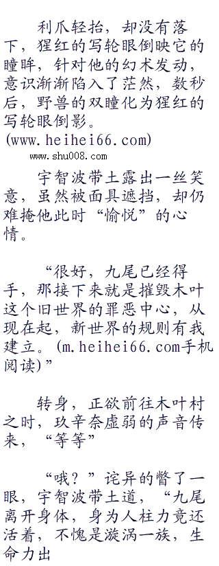 宇智波带土冷笑,猩红的三勾玉似透过她的身体看见咆哮的九尾。