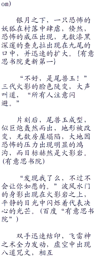 直到三代目火影的命令传达,整个村子才出现了一丝秩序,暗部的忍者出现在村子的各个角落,整合散落在各处的忍者,而三代火影本人则一马当先的朝九尾冲了过去。