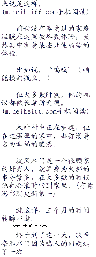 看到鸣人这么有活力,玖辛奈露出了开心的笑容,大概每个初为人母的女人最大的乐趣就是看着孩子成长了。