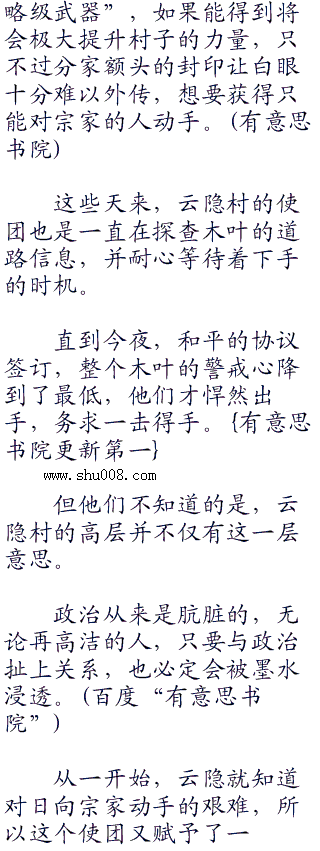 隐约间,他好像有一些印象,好像前世的时候日向宁次提到过这回事,后来云隐村借此事威胁,直接导致了日向宁次的父亲日向日差死亡。