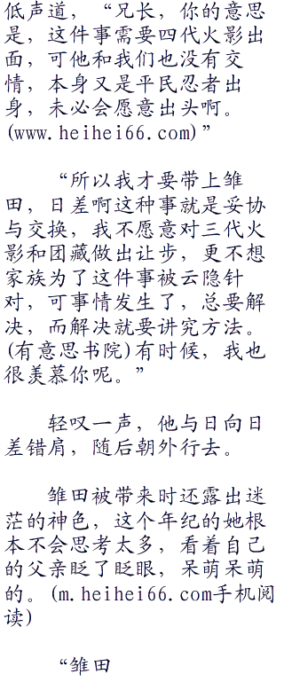 日向日差一愣,这个道理他当然明白,可这种时候兄长为什么突然说起这个,现在的首要问题不是解决云隐的事么?