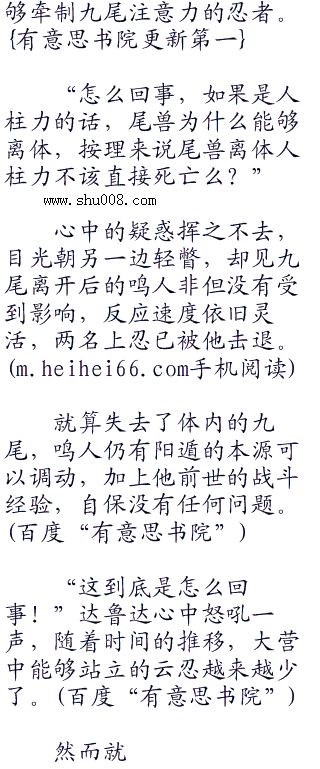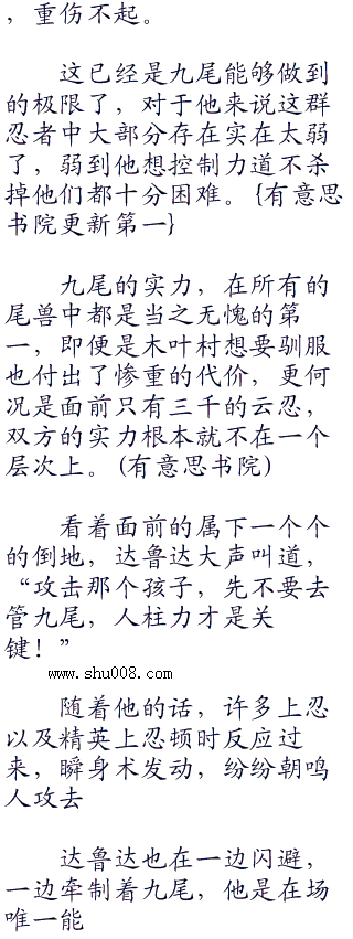 不过云隐村这次来的忍者实在太多了,就算九尾的查克拉能够保证源源不断,鸣人本身也只是一个三岁多的孩子,体力方面就是一个大问题。