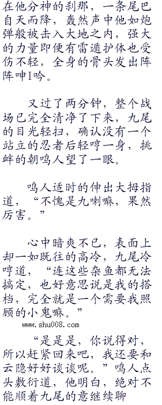 巨响声出现,鸣人站立的地方寸寸碎裂,却并未击中他本身。九尾模式的速度,在前世的时候已经超越了第四代雷影。