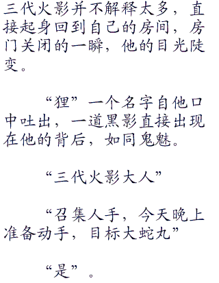 “那是当然的,自来也老师,你就等我的好消息吧”鸣人朝他笑道,转身朝自家的方向跑去。
