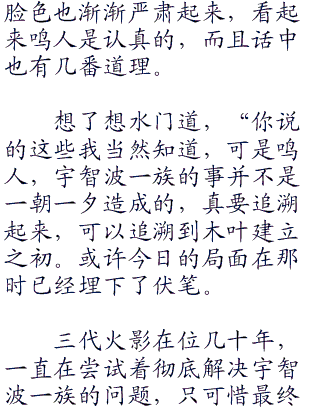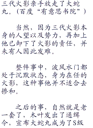 有些人甚至怀疑,是三代火影有意纵容才导致了大蛇丸的肆无忌惮,昨天夜里也是